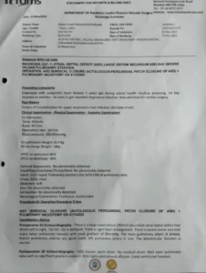 On 4/11/2025, he underwent ASD Surgical Closure + Pulmonary Valvotomy.