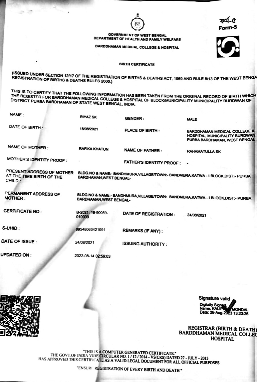 Riyaz comes from an extremely underprivileged family. His father, Mr. Rahamatulla Sk, is a daily wage laborer earning approximately ₹7,000 per month, as confirmed by the official income certificate. His work is irregular, and since Riyaz’s diagnosis, he has been unable to work consistently because he must stay at the hospital for his son’s treatment. Riyaz’s mother, Mrs. Rafika Khatun, is a homemaker with no source of income. The family has no savings, no financial backup, and is struggling to manage even basic household needs alongside mounting medical bills. With two young children to support and one battling cancer, the parents are overwhelmed, helpless, and exhausted. They are unable to continue Riyaz’s life-saving treatment without external support. This appeal is a heartfelt request to compassionate donors to help save Baby Riyaz’s life. Your support can ensure uninterrupted treatment, reduce the family’s burden, and give this innocent child a chance to survive, recover, and live a healthy future.
