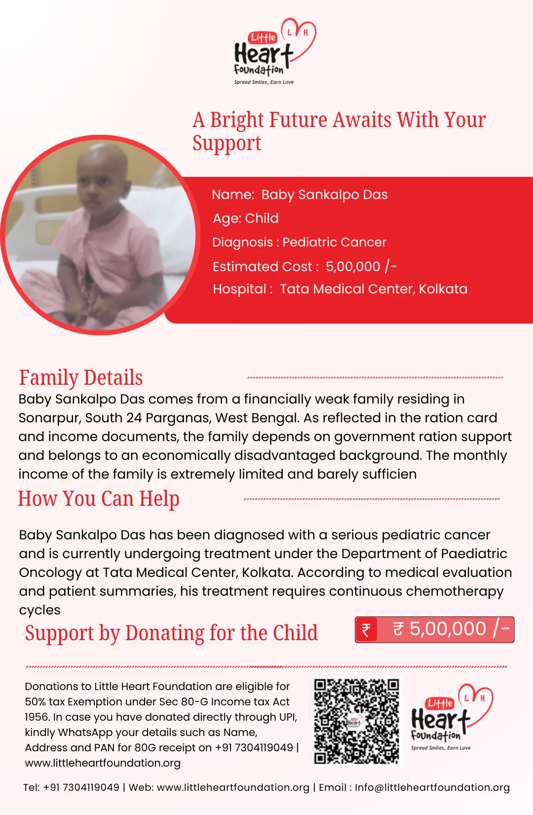 Team Little Heart FoundationAll medical reports, hospital summaries, and treatment plans have been issued by Tata Medical Center, Kolkata.