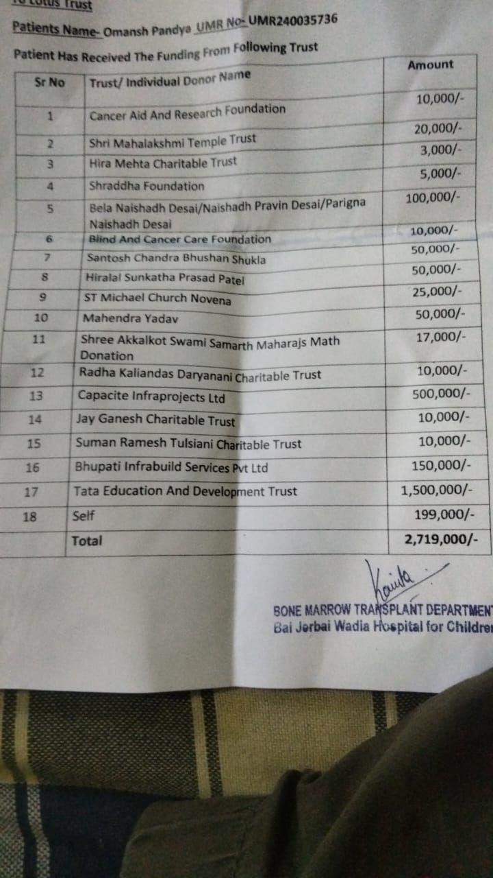 💰 The total estimated cost of treatment is ₹30,00,000/-, out of which ₹27,19,000/- has been raised. We still have a balance of ₹2,81,000/- to cover the remaining medical expenses.