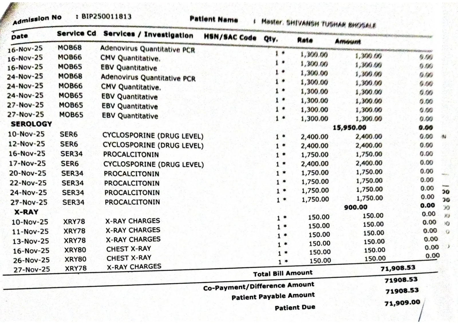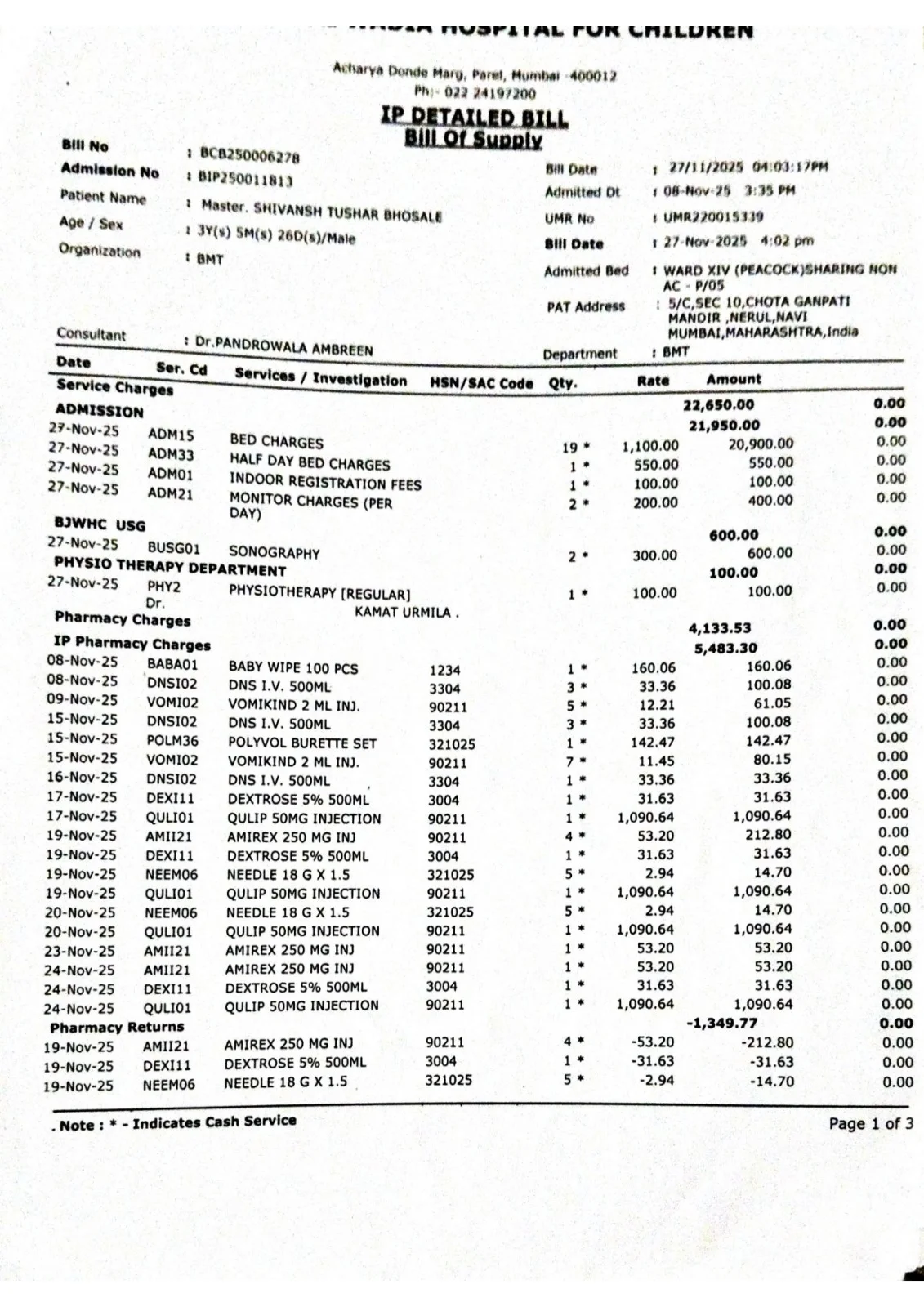 We would like to share an important update regarding Master Shivansh Tushar Bhosale (3 years old), who is currently undergoing critical treatment for Wiskott-Aldrich Syndrome. As per the medical treatment plan, a total of 8 chemotherapy cycles have been advised. At present, the 3rd chemotherapy cycle is ongoing, and the next cycle is scheduled for 11th April 2026. The treatment is progressing as planned; however, it remains crucial to continue all remaining cycles without interruption for his recovery. We would also like to inform you that the total hospital bill has reached approximately ₹71,909/-, and the family is facing severe financial hardship, making it difficult for them to manage the ongoing expenses. In this critical time, we humbly request your kind support and generous contributions to help continue this life-saving treatment. Every contribution, big or small, can make a meaningful difference in saving his life.